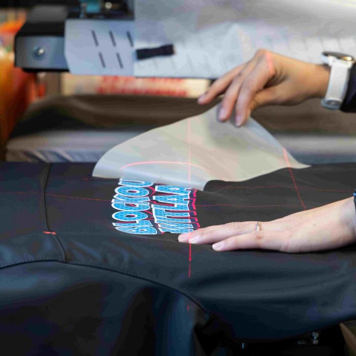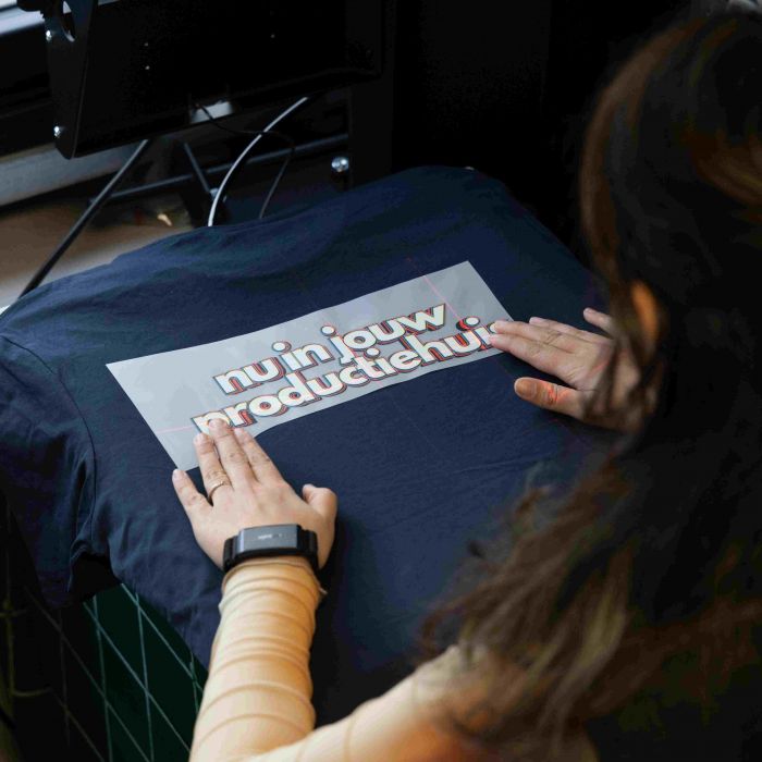DTF (Direct-to-Film) is uitgegroeid tot een vaste productietechniek binnen professionele textielproductie. Het is een populaire manier om kleding te bedrukking. Hierbij wordt je ontwerp eerst op een film geprint. Daarna kan je dit met hitte op kleding persen. Je ontvangt kant-en-klare textieltransfers standaard vanaf 55x50 cm. Vervolgens pers je deze zelf op textiel en lever je ze aan je klant.