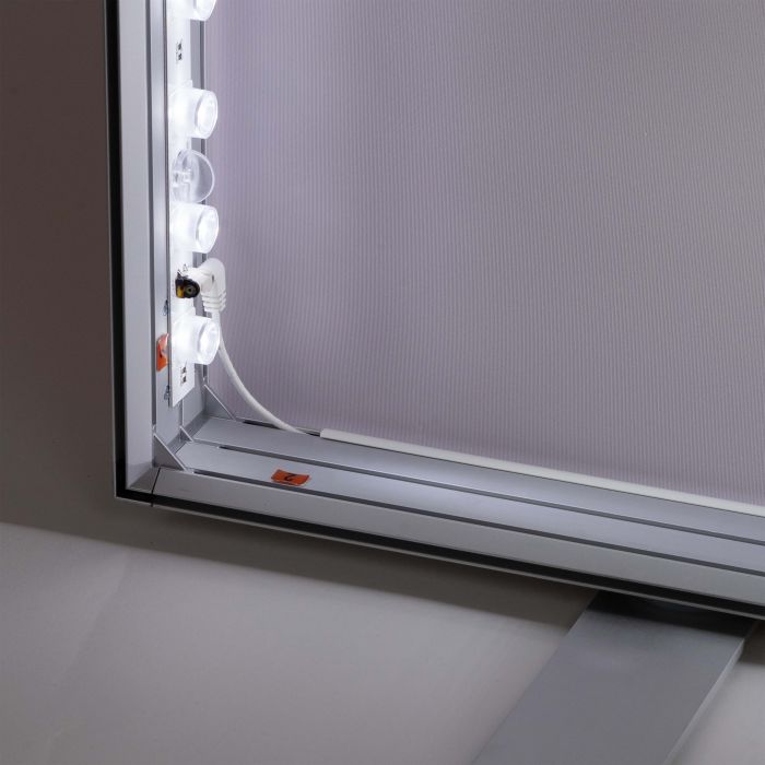 Het profiel wordt gecombineerd met een Samba Backlit of LumiTex doek. Beide materialen zorgen in combinatie met de 200% full colour print voor een krachtige, opvallende uitstraling. De LED-verlichting is geïntegreerd in het frame.