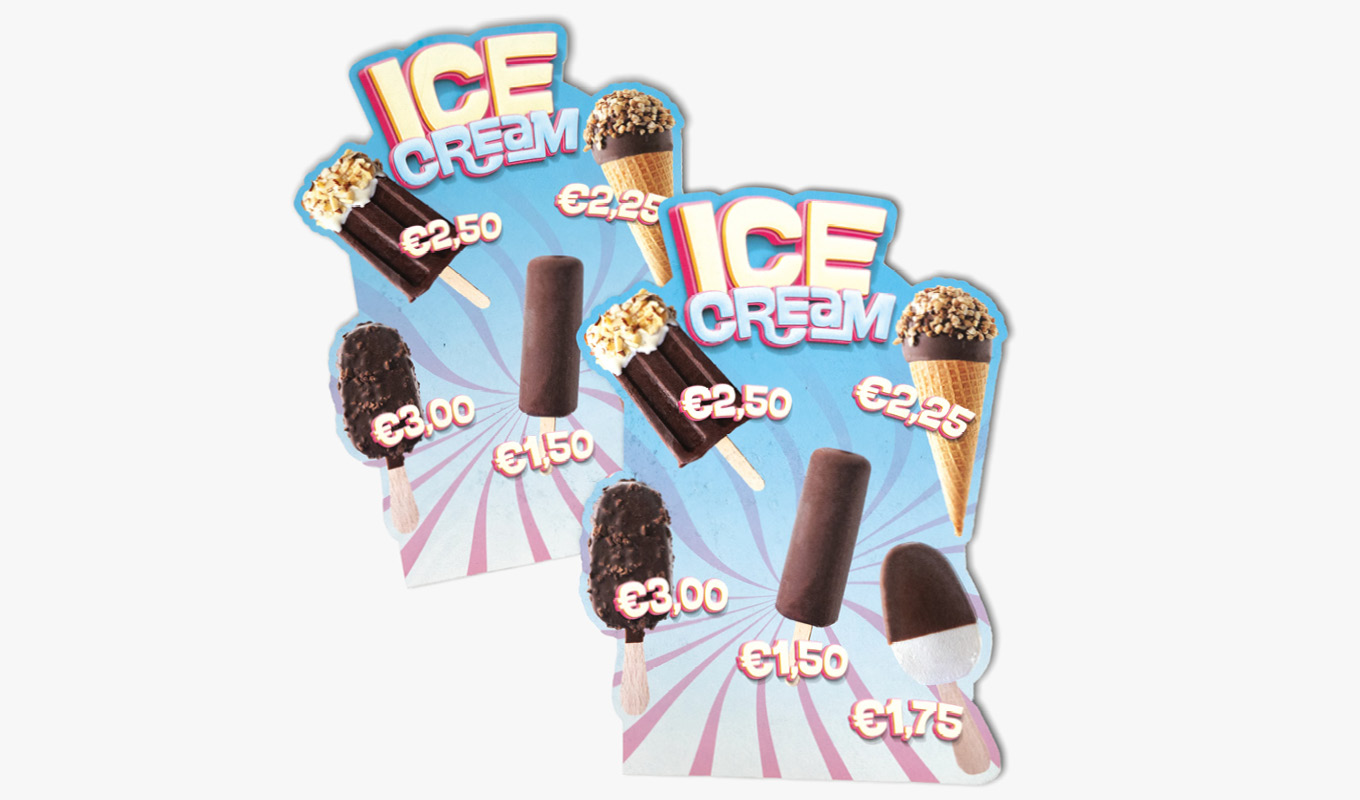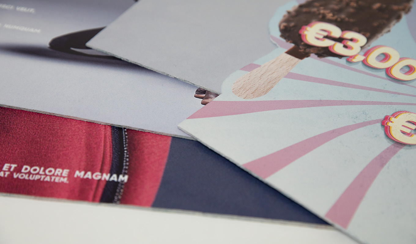 De nieuwe plaatdikte is een goed alternatief voor de materialen Forex 1 of 3 mm, Polystyreen, Evacast, Flexibel pvc en Displaykarton. Je bestelt deze met een recycle-look of witte toplaag.