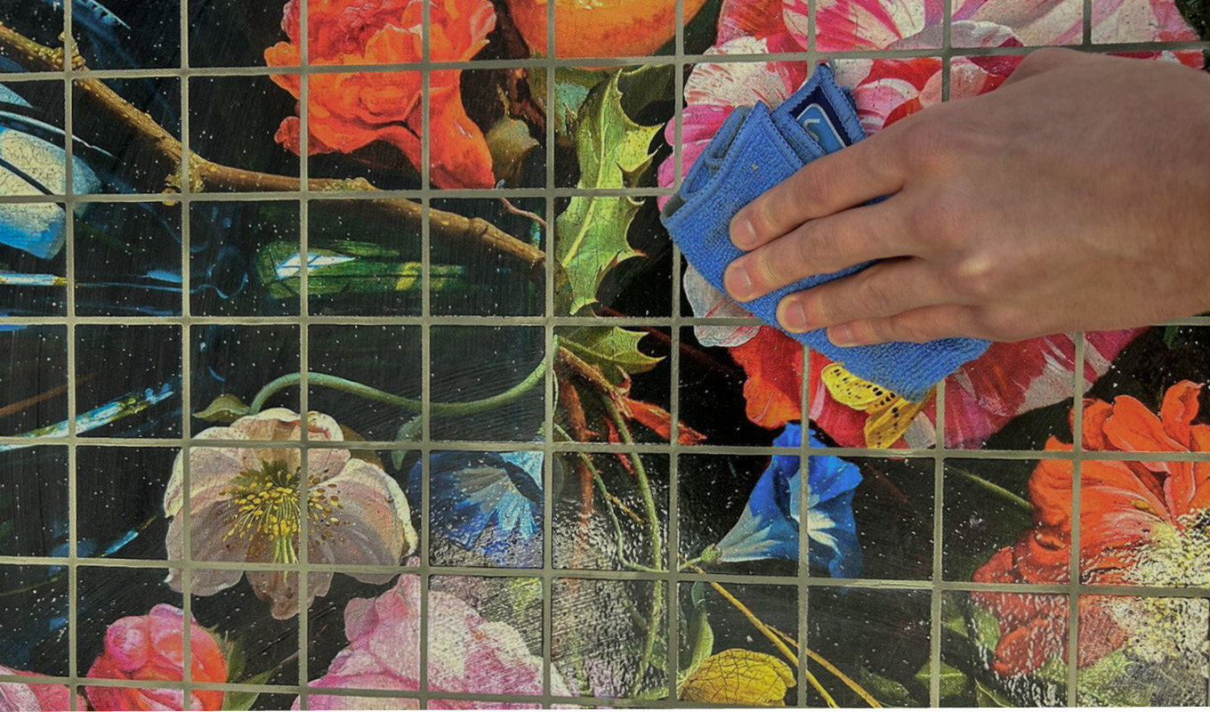 Tjalling legt uit: ''Met een tegeltjesstructuur is Sign Again® perfect voor (pr)interieurtoepassingen zoals wandbekleding. Dankzij de slag- en krasvastheid van het materiaal, is het dé duurzame oplossing voor binnen. Binnenkort is het ook mogelijk om voegmiddel te bestellen wanneer je kiest voor de tegeltjesstructuur. Dit heb je nodig voor de ultieme finishing touch. Hoe dit eruitziet laten we je hier zien: