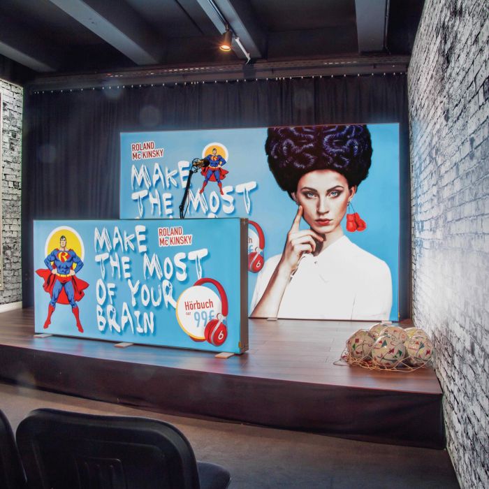 Dit materiaal wordt geproduceerd met een UV-printtechniek en is tot 494 cm uit één stuk te bestellen. Het doek heeft het lotuseffect: vuil en water blijft niet plakken maar valt van het doek. Hierdoor kan het tegen een stootje en kan je het naast binnen ook tijdelijk buiten gebruiken. Door de printtechniek heeft het materiaal wel een tijdelijke sterke geur en zonder lichtbron zie je alleen donkere kleuren en weinig contrast.